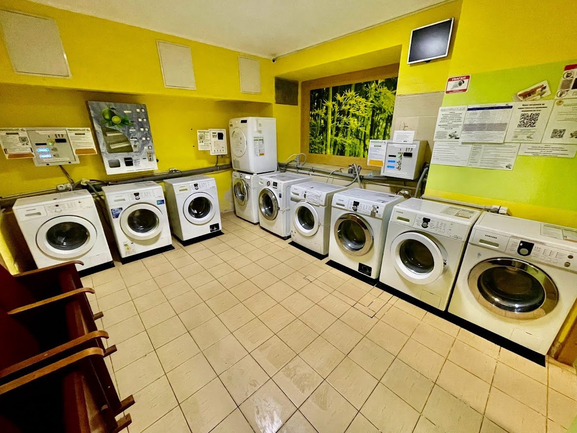 Відповідь: Пральня самообслуговування — це сервіс, де ви самі можете скористатися пральними та сушильними машинами для прання та сушки одягу. Ви просто приходите, завантажуєте речі, вибираєте програму, оплачуєте та чекаєте, поки процес буде завершений.